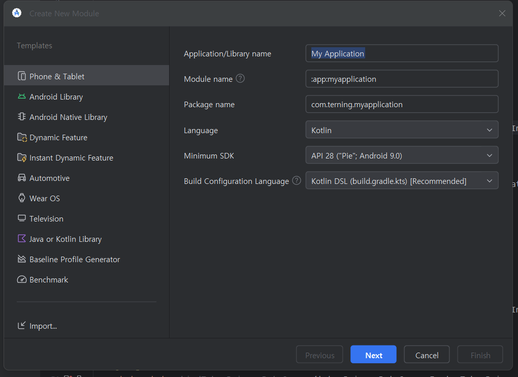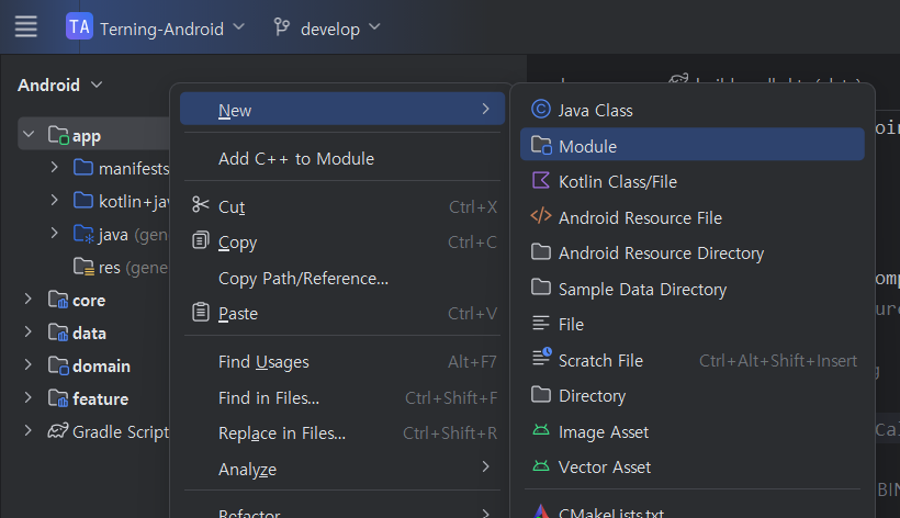 - app 모듈 우클릭 > New > Module