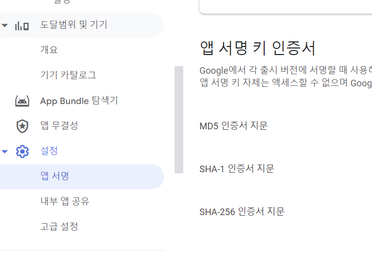 구글 콘솔에서 키 해시를 뽑는 방법이다.