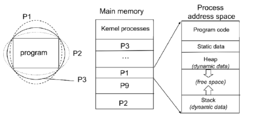 하나의 프로그램은 주어진 컴퓨터에서 여러 인스턴스로서 여러 프로세스로 동시에 실행될 수 있다.