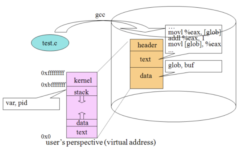 이 프로세스가 엑세스하는 메모리를 가상 주소 공간이라고 부른다. (이 가상 주소는 사용자에게 서로 다른 프로세스여도 동일한 주소로 보인다.)