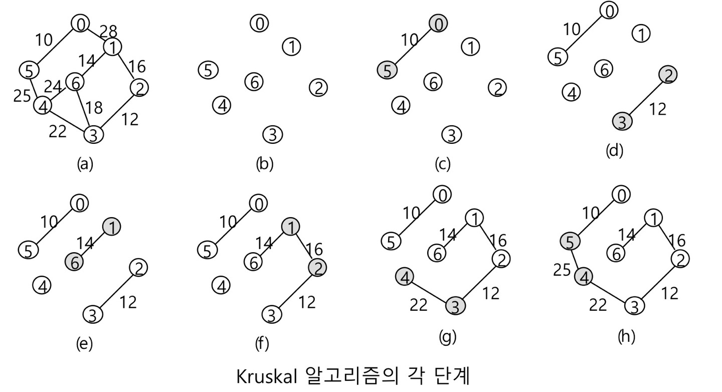 - 사이클을 생성하는 간선을 사용해서는 안 된다.
