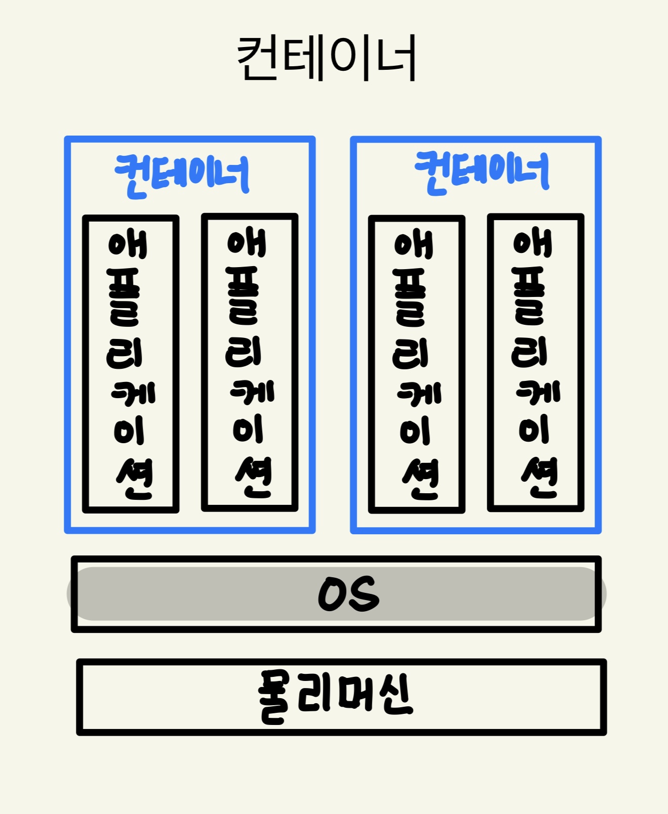 ์ปจํ ์ด๋๋ '๊ทธ๋ฆ', '์ฉ๊ธฐ' ๋ฑ์ ์๋ฏธ๋ก ํ ๋ง๋๋ก ์ ์ํ๋ฉด, '๋ฆฌ์์ค๊ฐ ๊ฒฉ๋ฆฌ๋ ํ๋ก์ธ์ค'์ด๋ค.