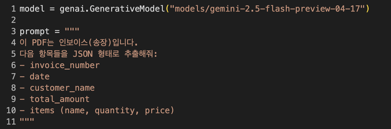 그럼 이제 이 모델과 프롬프트를 가지고, PDF 파일을 함께 넣어서 요청을 보내는 것이다.