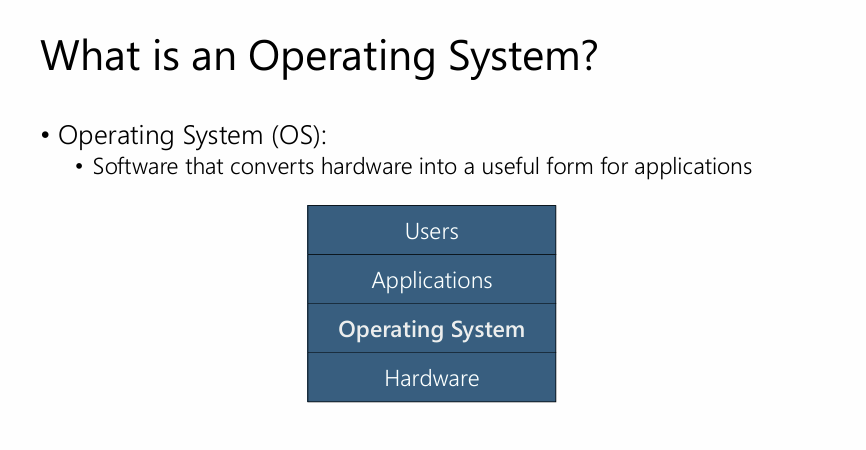 운영체제란, 하드웨어를 애플리케이션에 유용한 형태로 변환하는 소프트웨어를 의미한다.