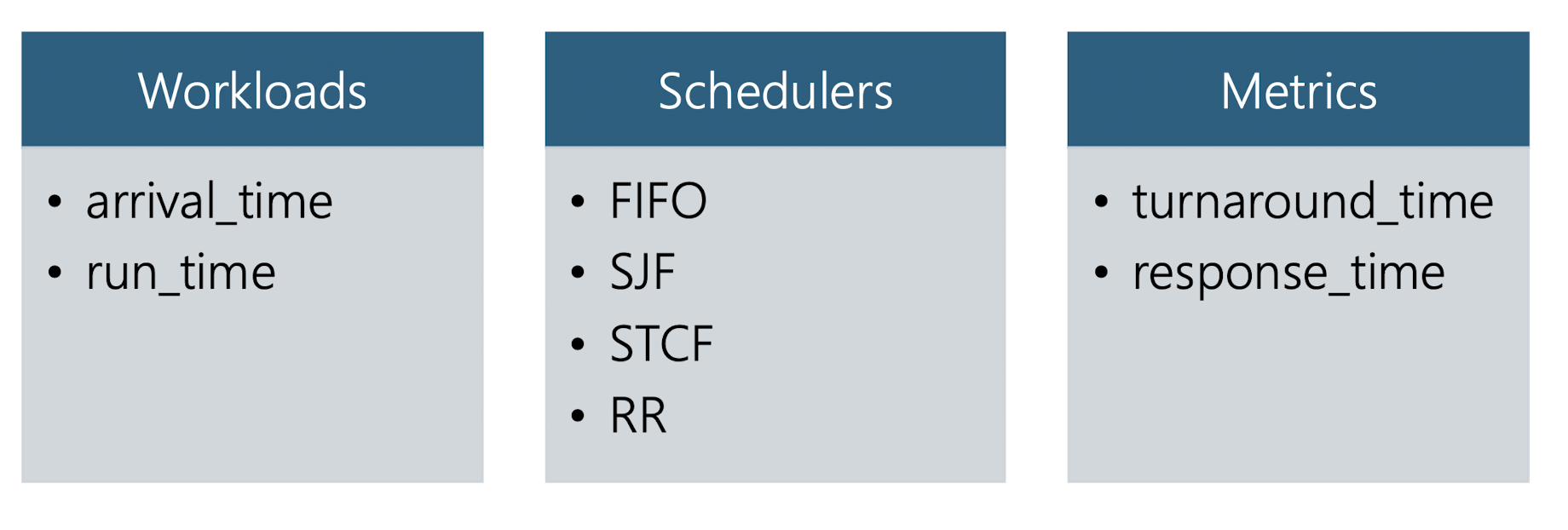 - 스케줄링의 품질을 평가하는 기준을 Metric이라고 한다.