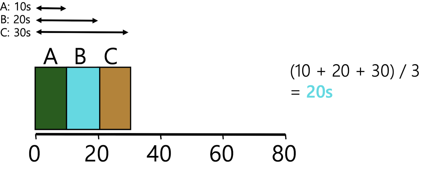 따라서 평균 반환 시간을 구한다면 (10 + 20 + 30) / 3 으로 20이 된다.