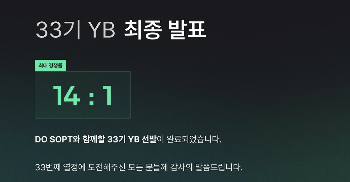 이번 SOPT의 최대 경쟁률은 14:1로, 매번 높은 경쟁률을 자랑하는 동아리이다.