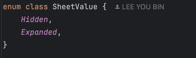- isVisible: 바텀시트의 가시여부를 담당한다. (Hidden이 아닐 때로 설정한 이유는 추후 PartiallyExpanded가 도입될 경우를 고려하였다.)
