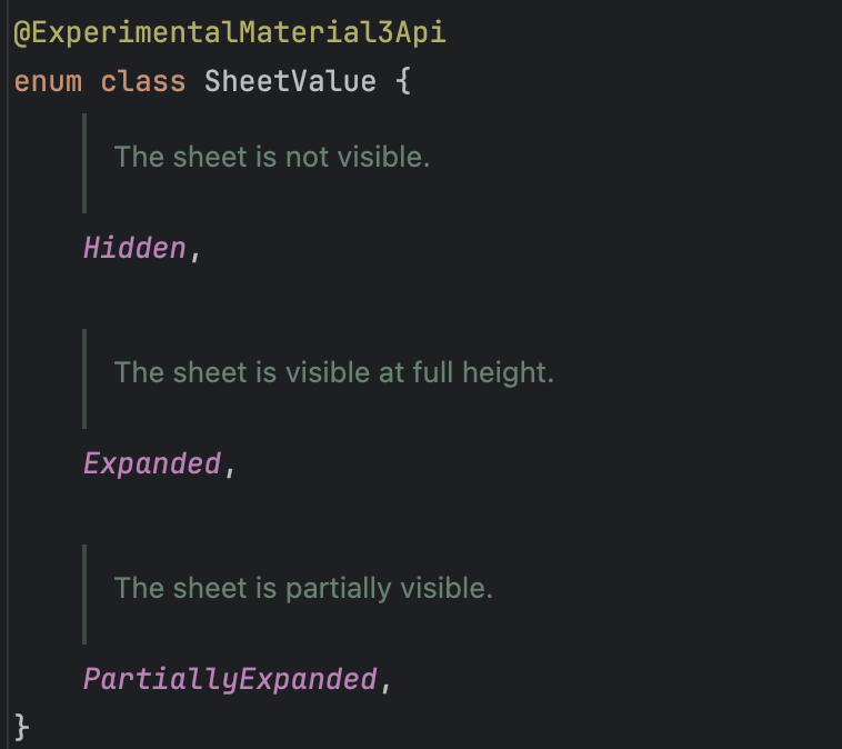 - PartiallyExpanded: 바텀시트가 부분적으로 보일 때